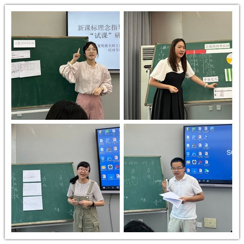 上午的试课活动,在夏老师的综合点评中暂告段落。夏老师认为学习小数和分数的涵义,重在具体情境中的感悟。认识小数和分数单位,感悟计数单位与计算一致性,与整数的一致性,体会“计数”。