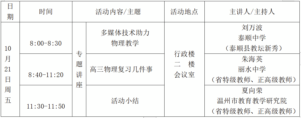 关于举行温州市夏向荣“名师送教”工作室第05次活动的通知