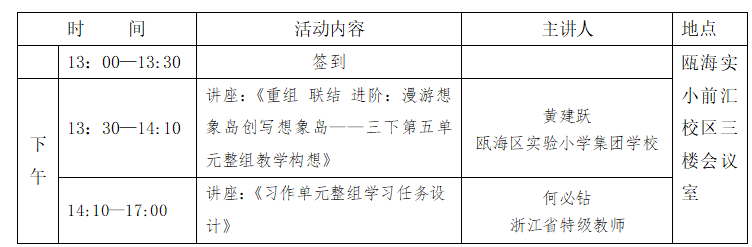 二、活动形式:单元整体教学案例介绍、专家讲座