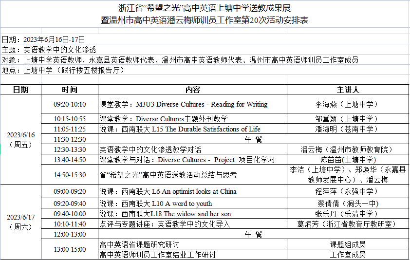 关于举行温州市潘云梅师训员名师工作室第20次活动的通知
