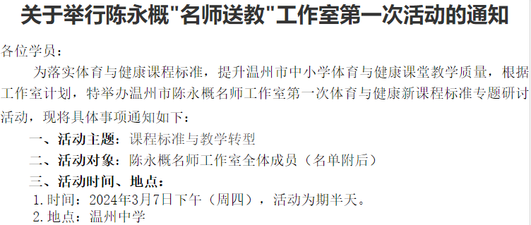 关于举行温州市陈永概“名师送教”工作室第一次活动的通知