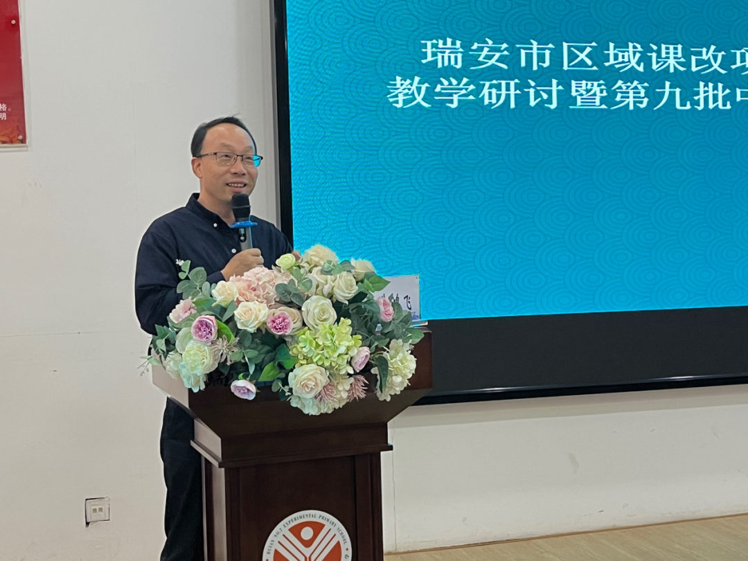 浙江省特级教师曹鸿飞院长作《区域课改项目实施建议》专题讲座。曹院长认为语文教学的关键在于培养学生阅读跟表达这一关键能力。他以温州市20位小文学家为例,指出语文课堂要培养学生阅读和写作的兴趣、习惯和能力。曹院长高度赞誉瑞安小语围绕读写进行区域教学创新实践,从中看到了“力量”。他认为瑞安小语在教研方向、行动、过程中发散出的力量,有效推进了区域教学改革。从项目本身的角度看,他肯定了单元、统整、读写的力量,成功攻破区域教学难点,让教学更有实效。曹院长精心点评了两个单元的整体架构,认为瑞安一校一单元的模式发挥了教研组、项目、创新的力量,推动了学校教研。他认为两节课例极具温州特色:用好教材资源、读写联动、打开学生思路、评改指导,希望习作课能更加有趣、更加精准。最后,曹院长提出了五点期望:坚持读写联动方向、突破统整关键、创新教学形态、把握研究注意点、坚守研究初心。曹院长的指导为瑞安小语更上一个台阶指明了方向。