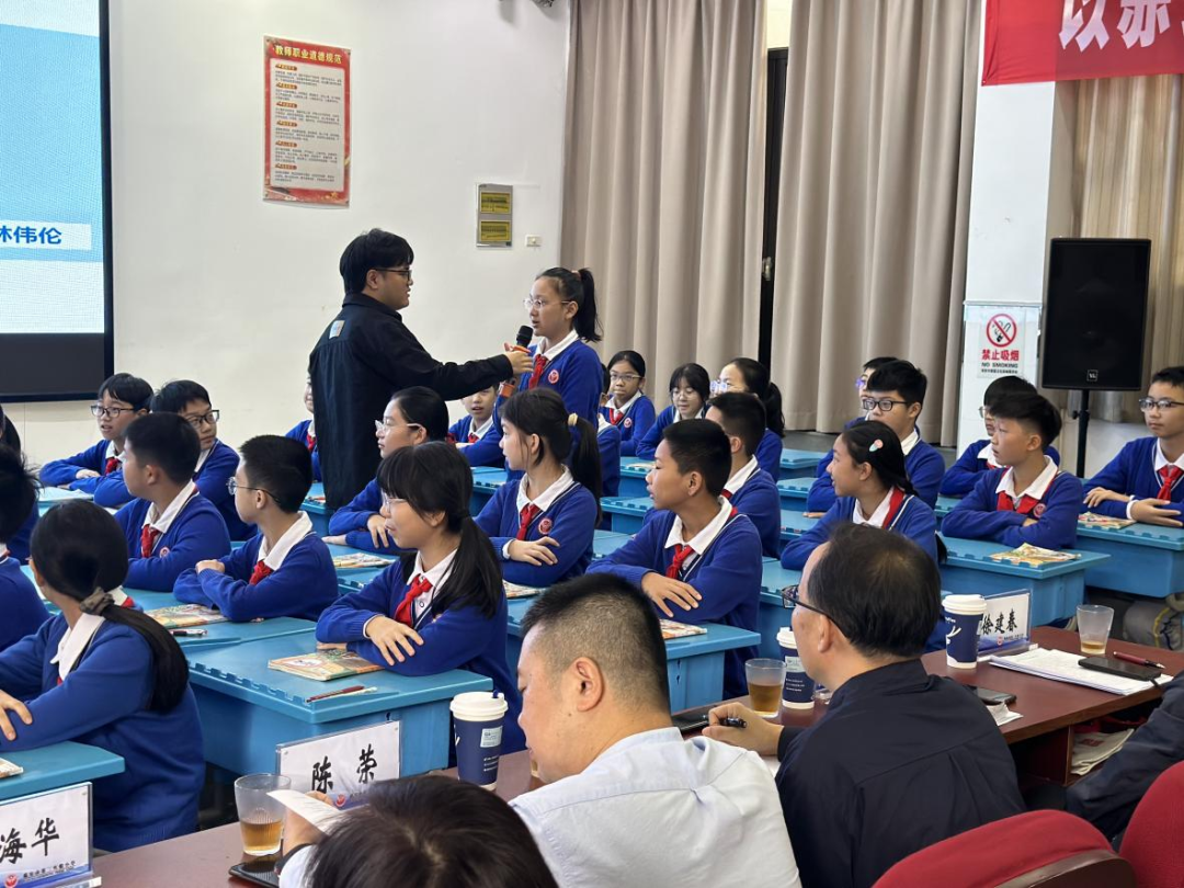 林伟伦老师展示课例《笔尖流出的故事》。课堂分四个板块展开:第一板块由创办“小说班刊”这一情境导入,明晰了创编故事的目标;第二板块聚焦冲突,指导学生构思情节;第三板块给予学生充分的自主时间,运用方法进行独立习作;第四板块则是师生一起点评习作,助力学生二次修改。林老师依托评价单,着力为孩子们打造温馨的读写课堂。
