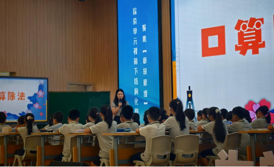 第二节课是由温州市广场路小学的吴初晓老师执教《口算除法》。吴老师以“80个气球每班分20个,可分几个班?”的实际问题引入,引发学生对80÷20的探究。引导学生通过画图、计数器操作等多种方式,理解将80÷20转化为8÷2的算理,又结合实际问题引出估算的必要性,强调把数估成接近的整十数的重要性。整堂课以问题为导向,在自主探究与互动交流中,学生不仅掌握了口算除法的方法,更提升了数学思维能力,充分体会到数学与生活的紧密联系。