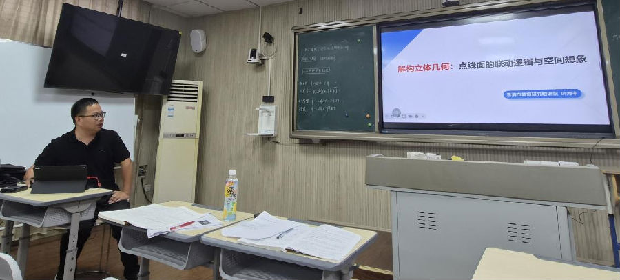 随后,领衔名师、乐清市芙蓉中学叶海丰老师作了题为《解构立体几何:点线面的联动逻辑空间想象》的专题讲座,为在场教师提供了破解教学难点的全新思路与有效策略。