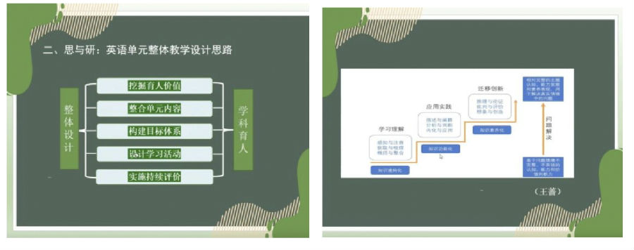 讲座开篇,陈亚飞老师系统解读英语课程核心要素,涵盖主题、语篇、语言知识、文化知识、语言技能和学习策略。陈老师阐释了通过学习理解、应用实践、迁移创新等活动,推动学生核心素养在义务教育阶段持续发展的理念,还结合框架图详细说明了各要素在单元整体教学中的作用,为老师们理解课程理念、开展教学实践提供了清晰指引。