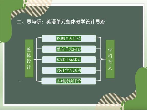 陈亚飞老师在这个环节聚焦教学实践路径展开分享。她提出以挖掘育人价值、整合单元内容、构建目标体系、设计学习活动、实施持续评价为整体设计思路,落实学科育人。陈老师通过单元链式评价,涵盖过程性与结果性评价,为教师在单元整体视域下开展教学评提供了可操作的实践范式。陈亚飞老师还分享了AI技术在英语课堂教学、评价过程中的实践和运用,为老师们提供了丰富的教学思路与实践方法。
